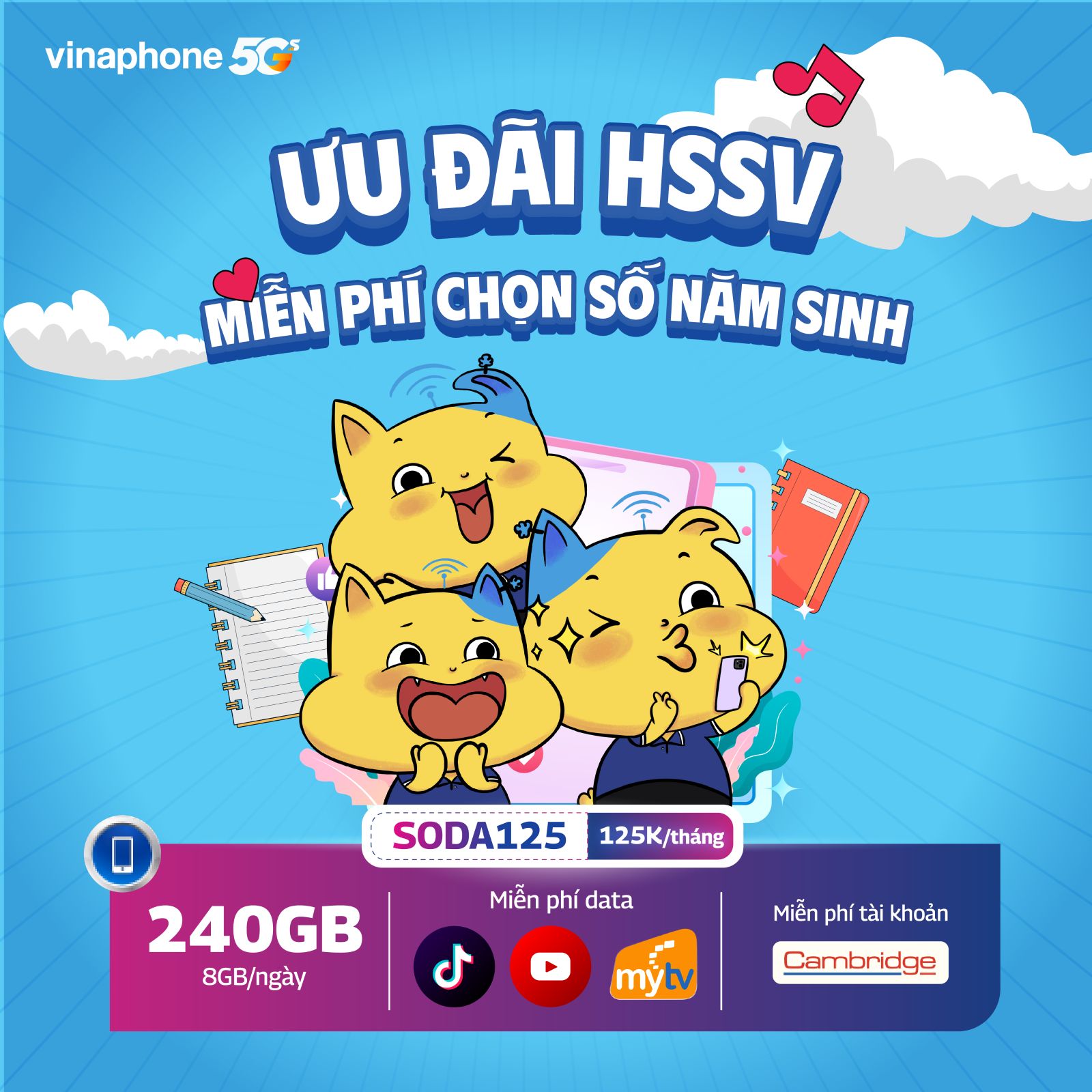 - SODA125 (125.000đ/tháng): Dành cho những "mọt sách" chính hiệu cần dung lượng siêu khủng. Gói cước cung cấp tới 240GB/tháng (8GB/ngày), thoải mái tải tài liệu nặng, xem video bài giảng chất lượng cao. Đặc biệt, gói cước còn tặng kèm tài khoản học tiếng Anh trên ứng dụng Cambridge.