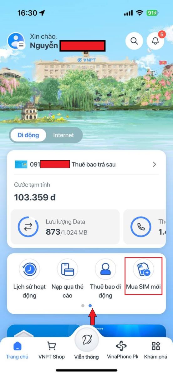 3. Hướng dẫn mua eSIM VinaPhone mới trên ứng dụng MyVNPT