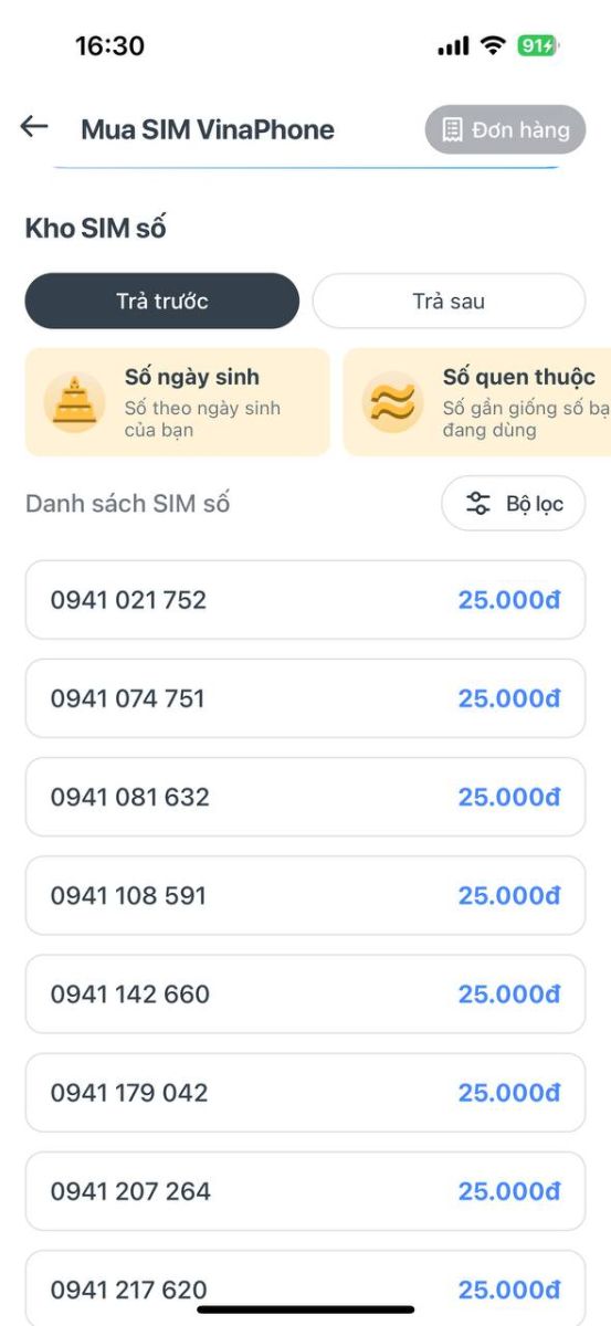 - Bước 3: Tìm kiếm và chọn số điện thoại ưng ý trên kho số của VinaPhone.