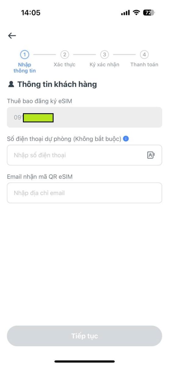- Bước 5: Chọn gói cước và cập nhật thông tin nhận eSim theo hướng dẫn