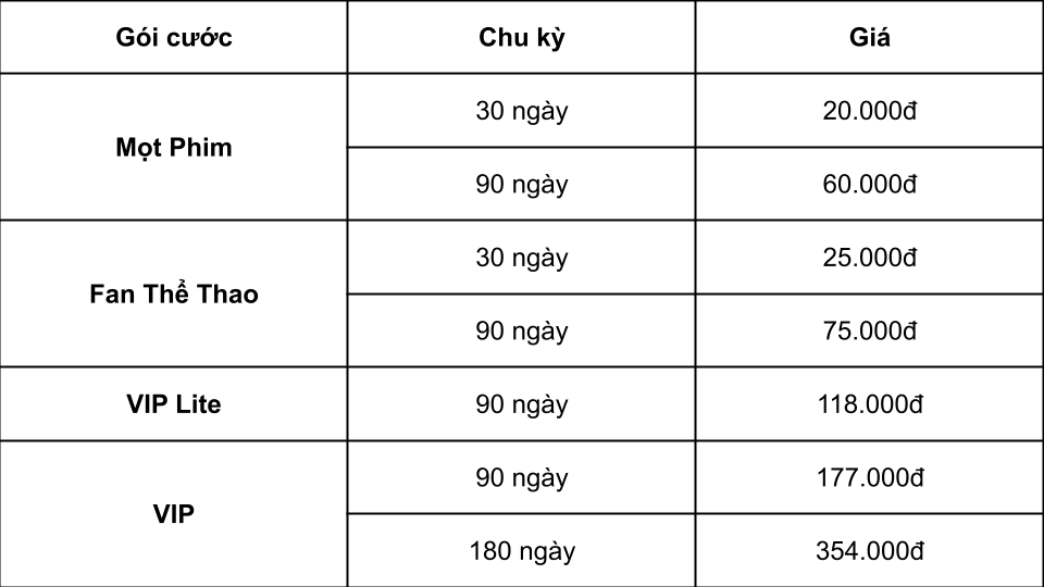 VIP Lite phù hợp với người thích trải nghiệm đa nội dung, muốn “xem mọi thứ” tiện lợi trên thiết bị cá nhân với các lựa chọn giá phải chăng: 39.000đ/30 ngày hoặc 3.000đ/ngày.